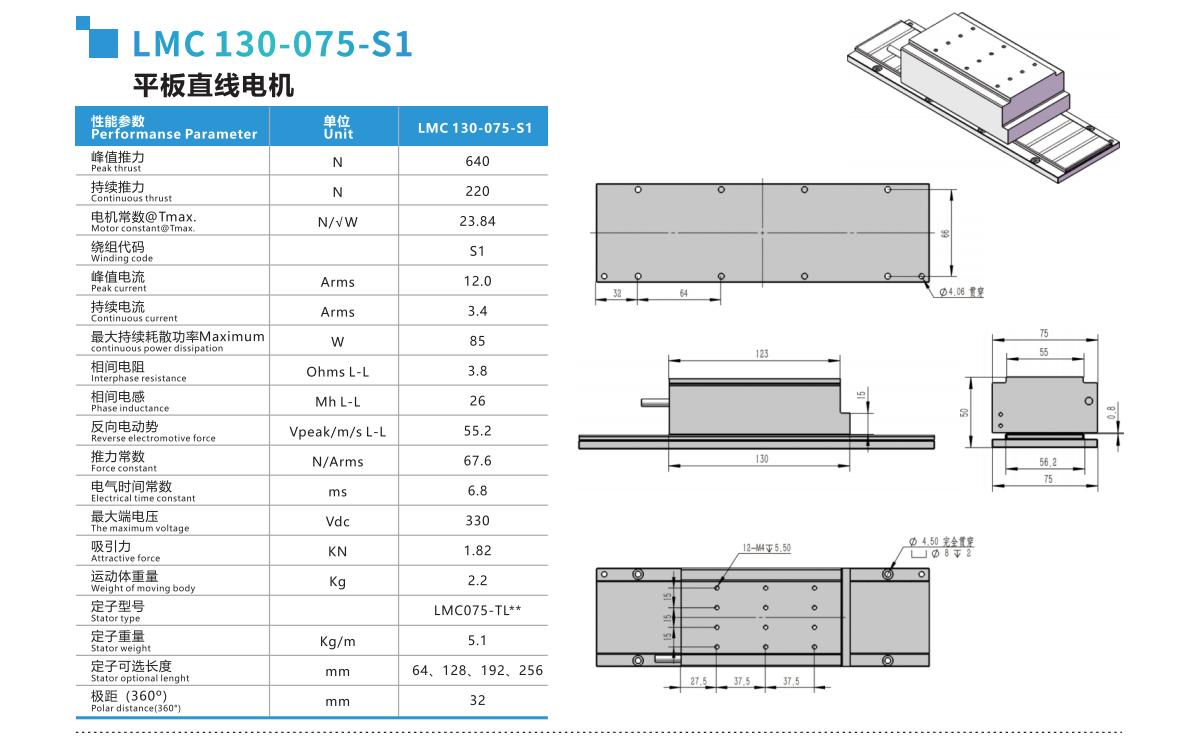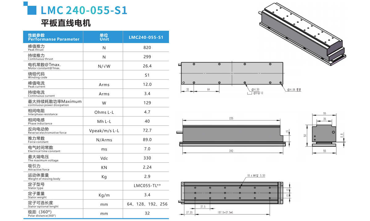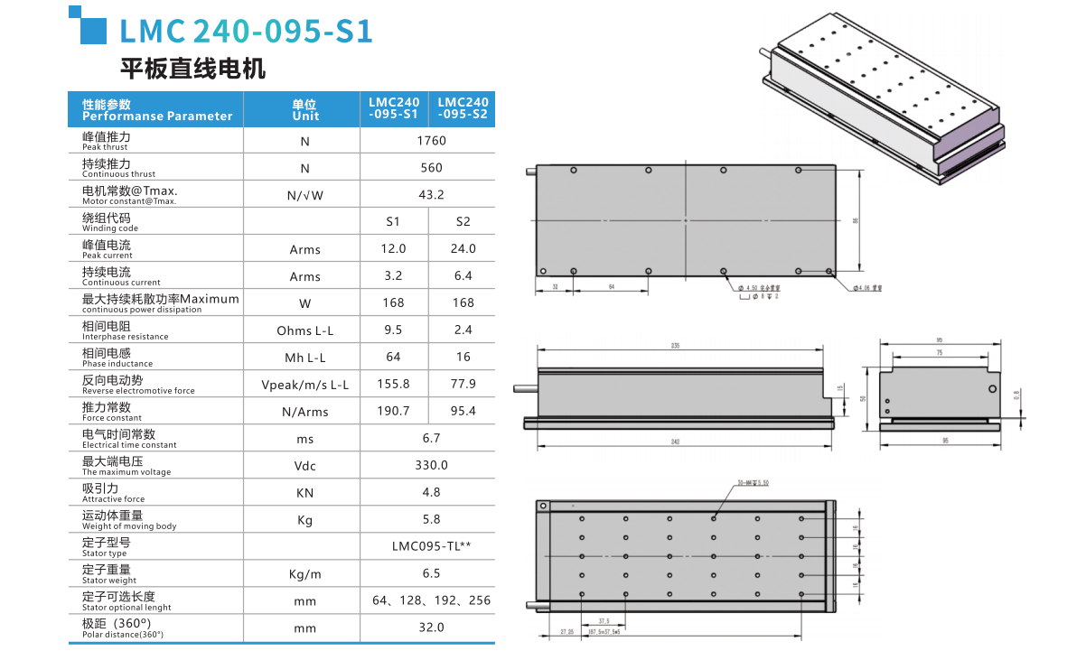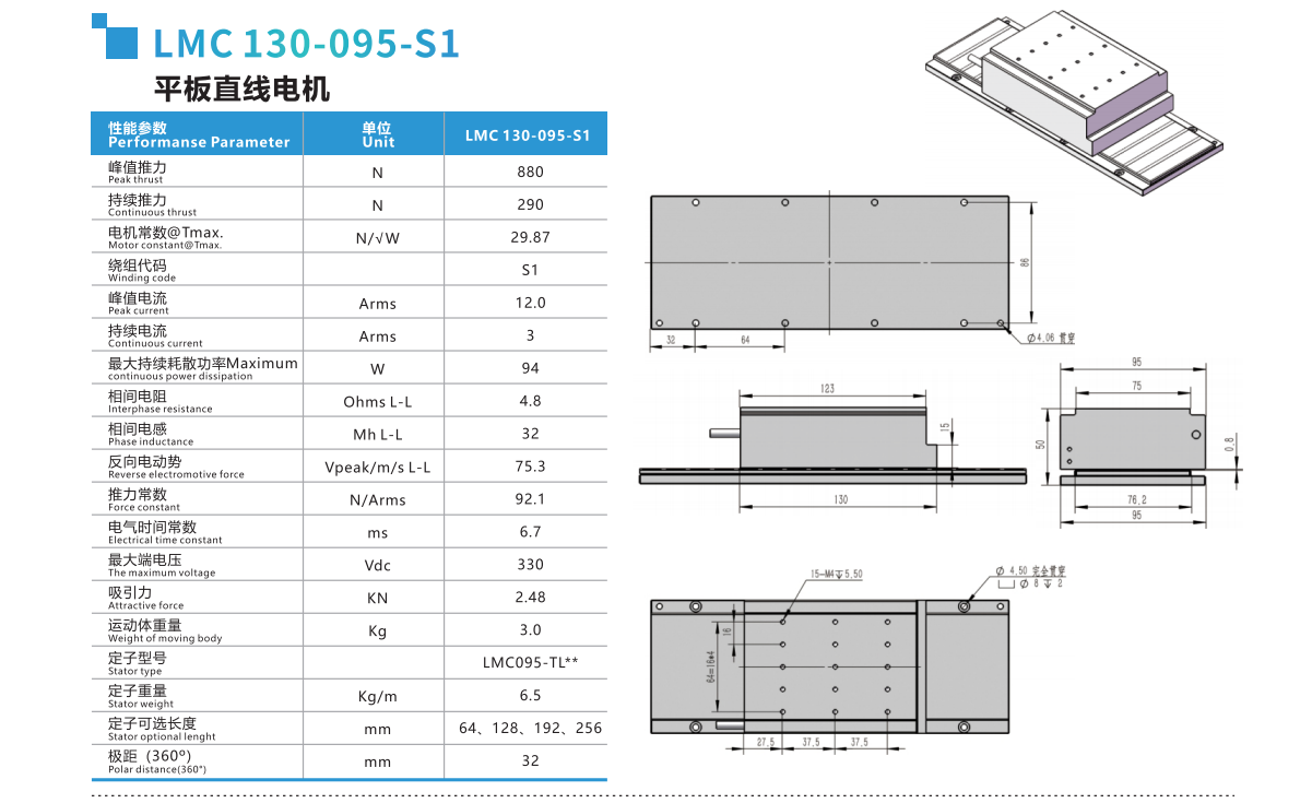 LMC有鐵芯電機(jī)采用了極佳的抗齒槽效應(yīng)的解決方案,盡最大限度降低齒槽效應(yīng),這一切都無需偏斜磁鐵。它們外型小巧、低吸力,適合替代很多無鐵芯應(yīng)用,電機(jī)產(chǎn)生的高推力使其成為加速和移動高質(zhì)量以及加工過程中保持剛度的理想選擇。
